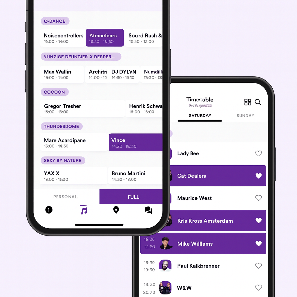 Create a personal timetable and get notified when your favourite artist starts playing.
